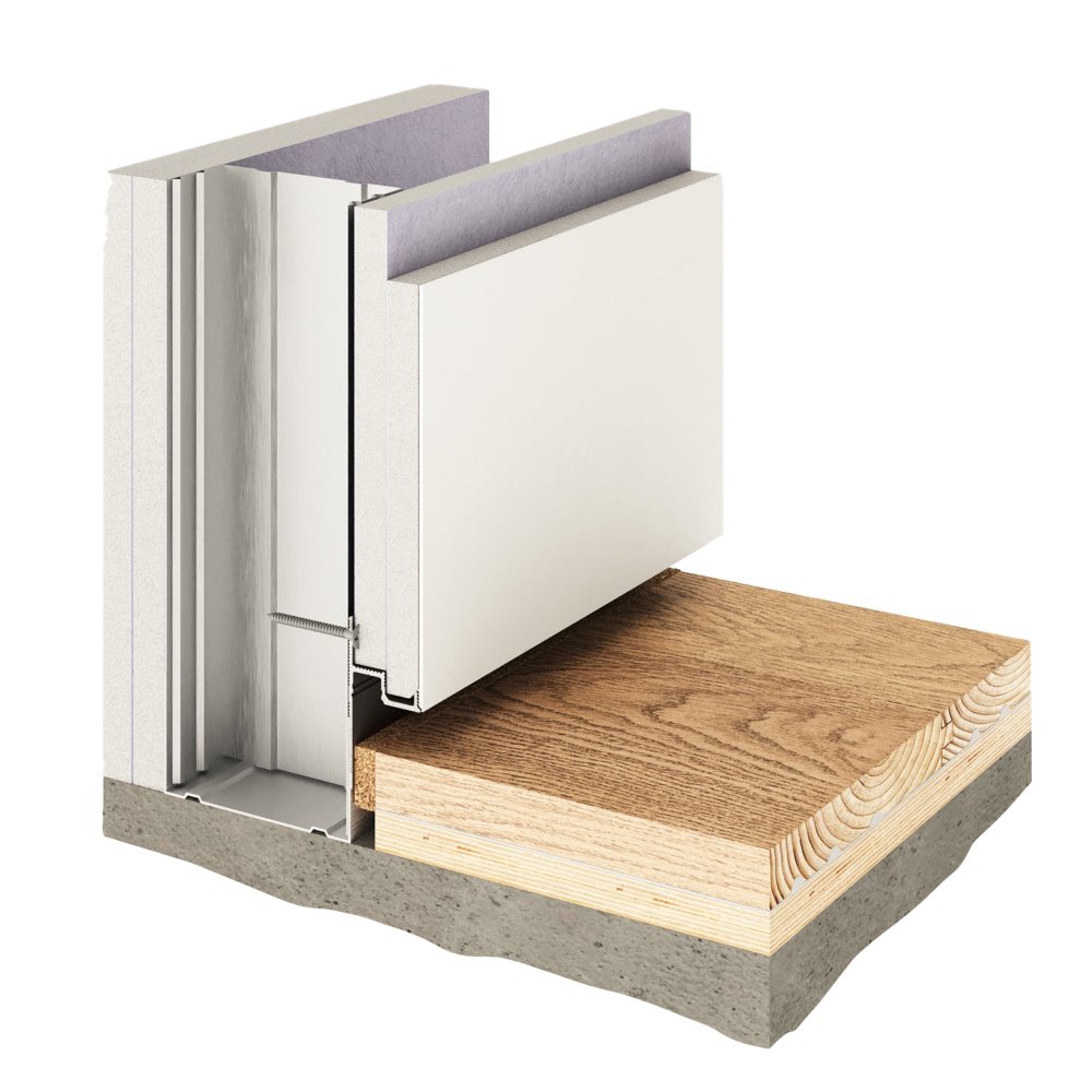 - Зазор регулируется высотой напольного покрытия и/или уровнем монтажа профиля, до 30 мм