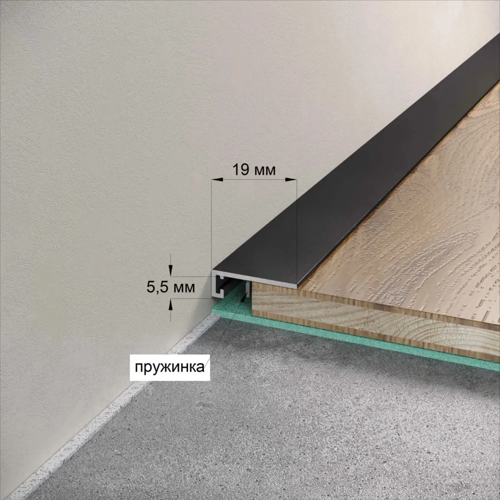 Микро плинтус Maxi 19мм отлично подходит для укладки паркетной и инженерной доски и закрывает технологический шов укладки чистового пола.