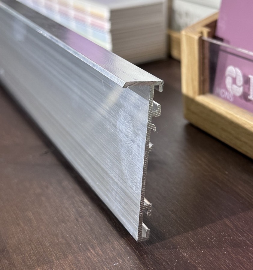 Плинтус со вставкой для оформления напольного покрытия в едином цветовом и фактурном стиле. Модель встраиваемого плинтуса используется для гипсокартона. Вставка из металла (заказывается отдельно).