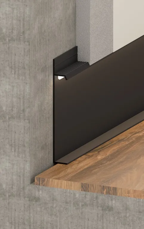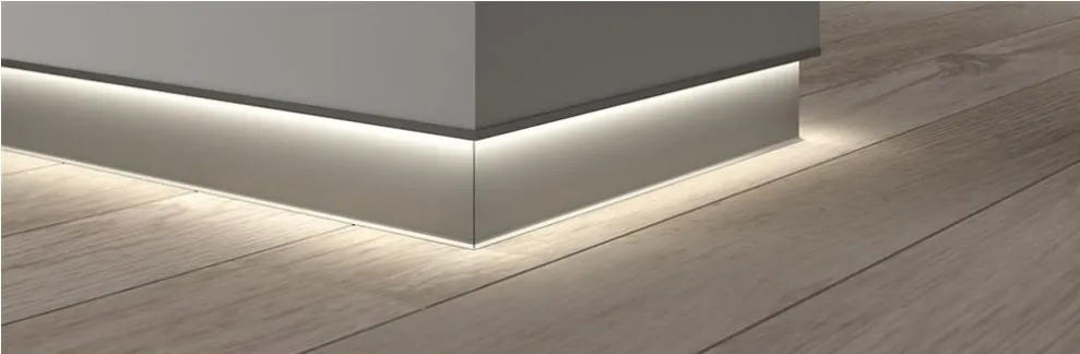 Плинтус "П образный" для LED подсветки или под вставку МДФ, для оформления напольного покрытия в едином цветовом и фактурном стиле.