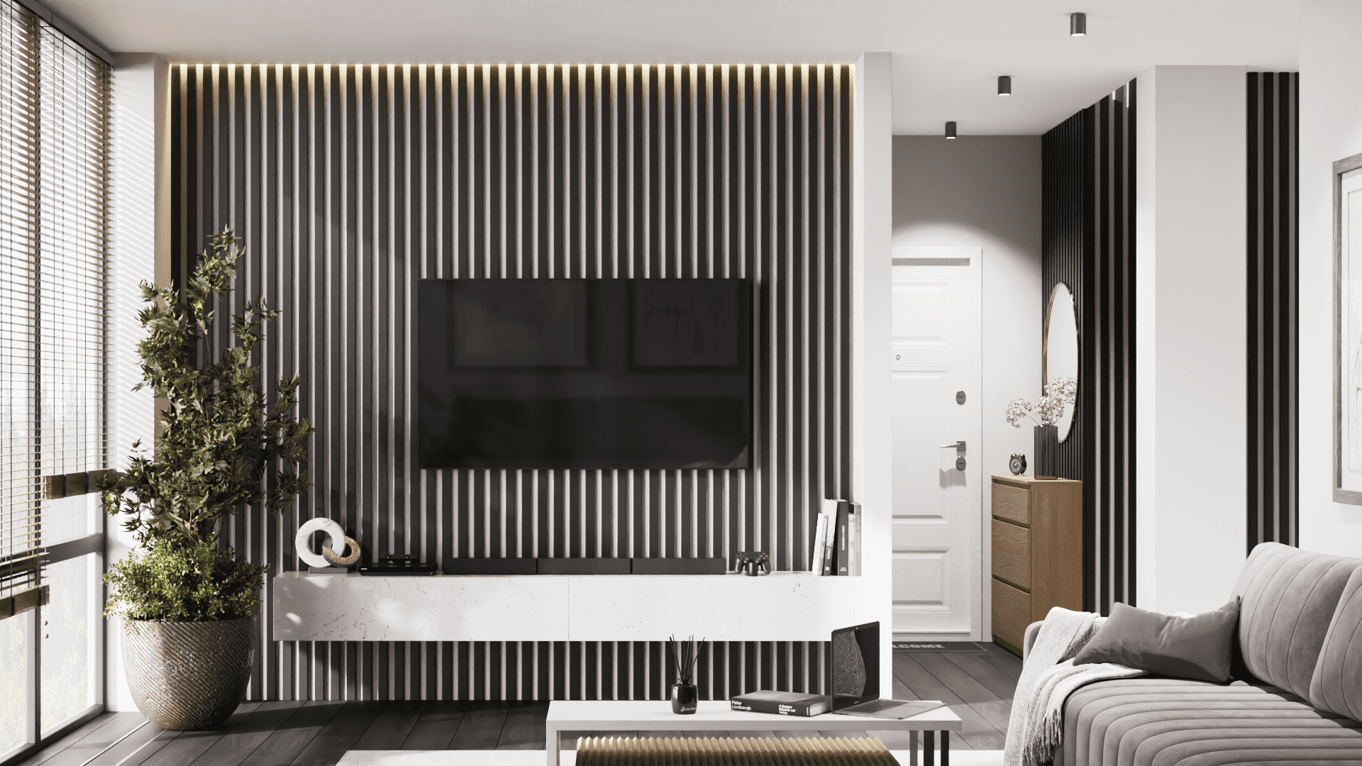 Рейки (рееная панель) для декорирования стен с финишной отделкой (покраска, обои и пр.).|