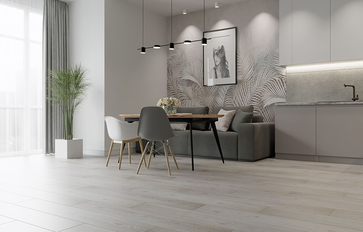 Ламинат MSPC Дуб Зимний вечер от производителя Stone Floor - это высококачественные композитные полы, которые благодаря своей экологичности и прочности, стали прекрасной альтернативой натуральному паркету. Дизайн Дуб Зимний вечер имеет светло-серый цвет для создания современного и стильного интерьера. Глубокая текстура поверхности и 4-сторонняя фаска по периметру создают ощущение натуральности и комфорта. Верхний рабочий слой имеет надежный anti scratch эффект.