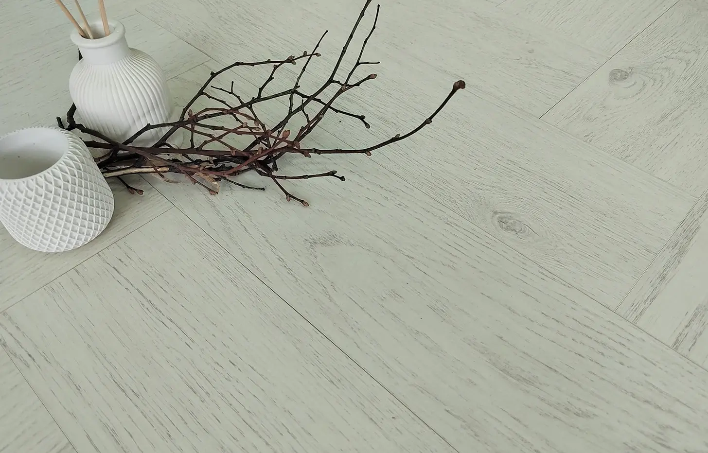 Дизайнерский MSPC ламинат Дуб Норфилд предназначен для художественной укладки в формате «Ёлочка». В каждой пачке равное количество досок А и Б, стыкуя которые, вы получите необычный зигзагообразный рисунок. Дуб Норфилд создан для тех, кто любит и ценит натуральный паркет, но не готов мириться со сложностями ухода за ним. Декор прекрасно имитирует древесину дуба, окрашенную в цвет слоновой кости и имеющую легкую изящную брашировку. Тиснение синхронизировано, а фактура, не имеющая ярко выраженных дефектов древесины, выглядит более чем аутентично.