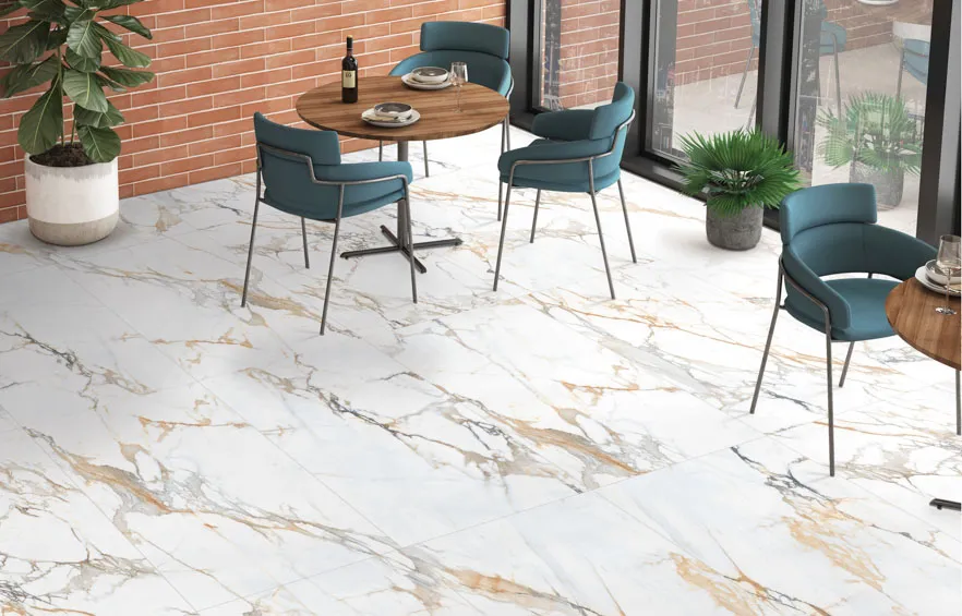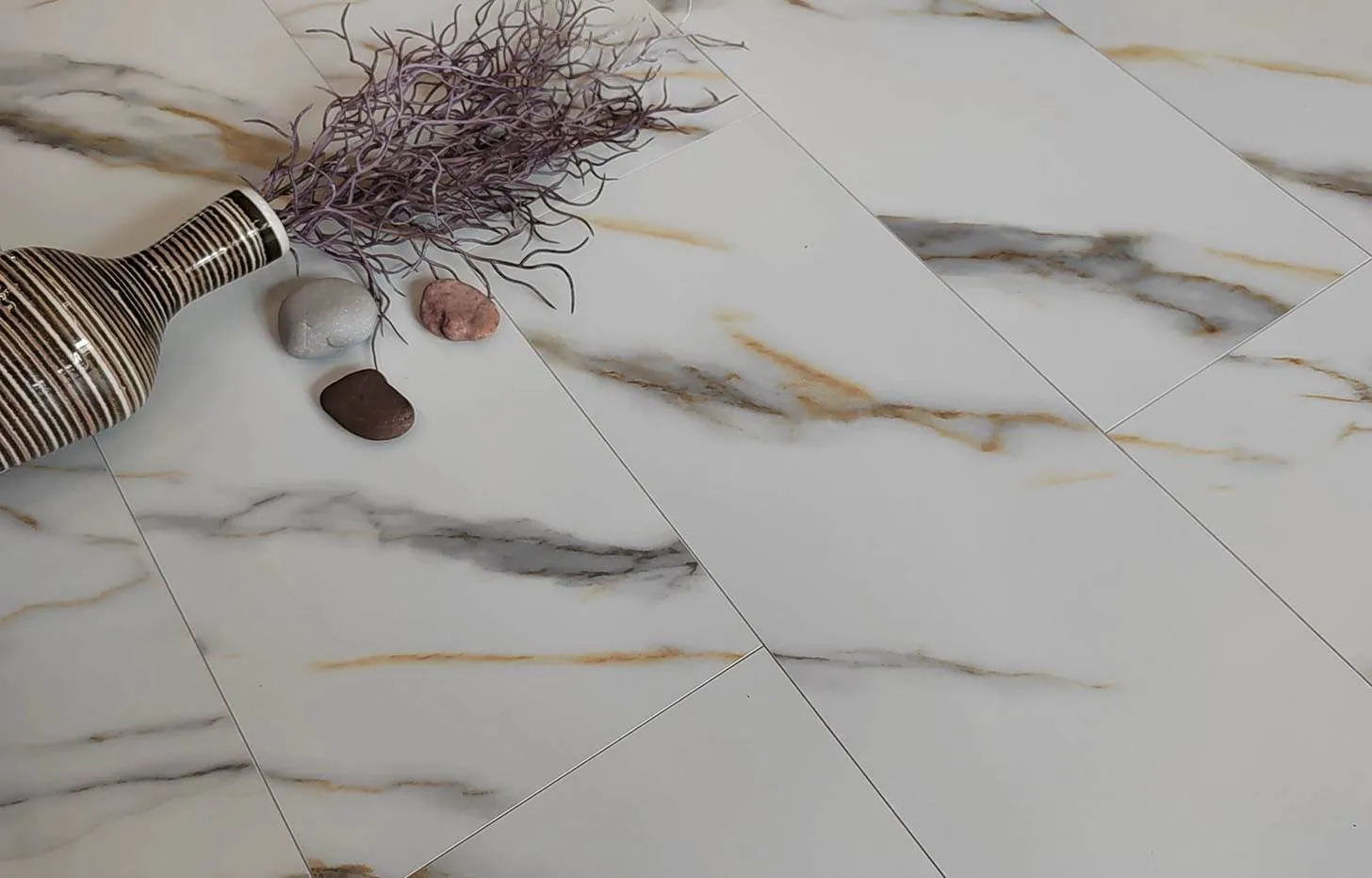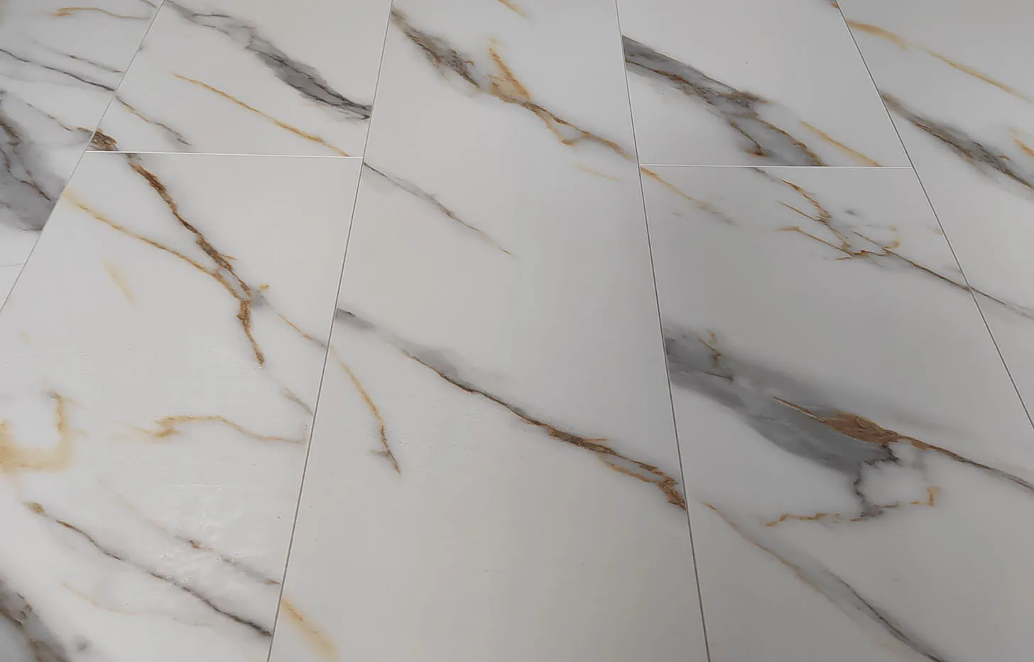 Минерально-каменный MSPC ламинат Мрамор Бело-Золотой — это декор, имитирующий изысканную текстуру белого мрамора, в формате большой крупной плитки (Big Stone) размером 1220*234 мм. Бело-золотой Мрамор имеет 4-сторонюю глубокую V-образную фаску. Так как сам материал обладает 100 % водостойкостью и крайне низким коэффициентом термореактивности, этот дизайн используют при укладке во всех зонах квартиры и зачастую там, где теплый пол является основным источником отопления. Без пороговая укладка в помещениях — до 200 м2. Возможность монтажа под тяжелую мебель — да. Возможность нагрева до +70° С без потери гарантии. Есть антивандальная обработка поверхности от появления царапин и выцветания на солнце.