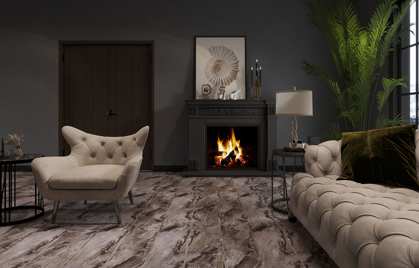 Минерально-каменный MSPC ламинат Мрамор Перуанский — это декор, имитирующий изысканную текстуру мраморного камня, в формате большой крупной плитки размером 1220*234 мм. Ламель этой плитки имеет 4-сторонюю глубокую V-образную фаску. Так как сам материал обладает 100 % водостойкостью и крайне низким коэффициентом термореактивности, Мрамор Перуанский используют при укладке во всех зонах квартиры и часто там, где теплый пол является основным источником отопления. Без пороговая укладка в помещениях — до 200 м2. Возможность монтажа под тяжелую мебель — да. Возможность нагрева до + 70 С без потери гарантии.