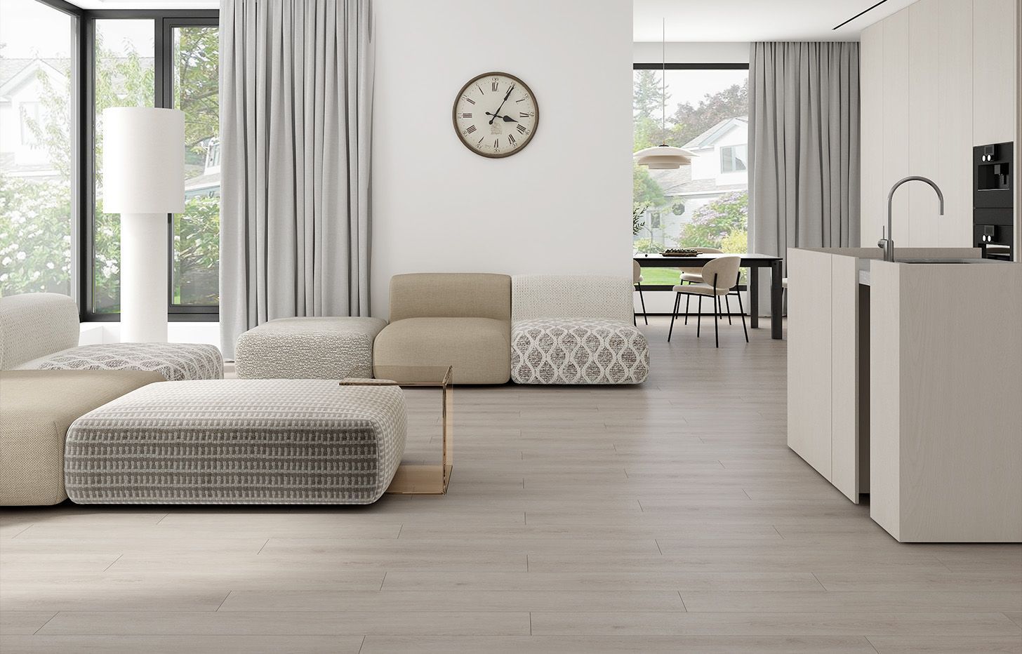 MSPC ламинат Дуб Корнерфилд от Stone Floor — настоящий шедевр. Это декор, который сочетает в себе пятьдесят оттенков серого и пятьдесят оттенков бежевого. Удивительно изящный и удивительно атмосферный, Дуб Корнерфилд станет идеальной основой для интерьера, в котором сочетается эклектика теплых и холодных оттенков. Именно он будет способен объединить холодный синий и бежевый, апельсиновый и серо-зеленый. Добавьте к удивительному цвету Дуба Корнерфилд элегантную 4-стороннюю фаску, medium формат доски и синхронное тиснение и у вас не останется никаких сомнений в верности вашего выбора.